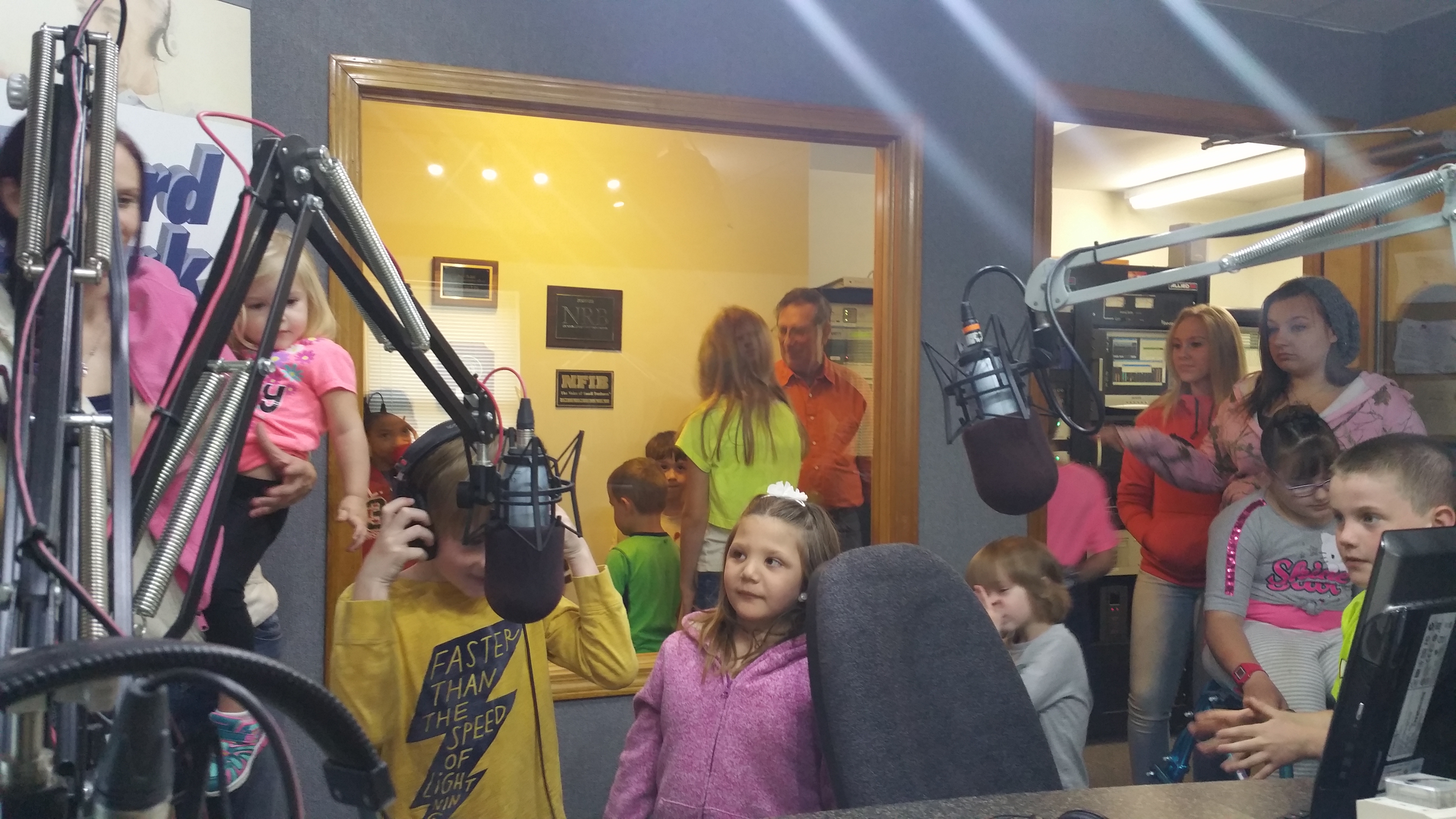 Recording studio filled with adults and children
